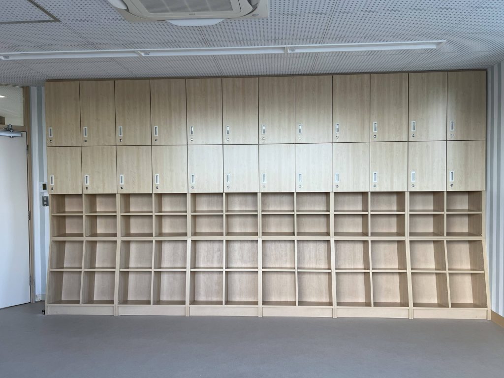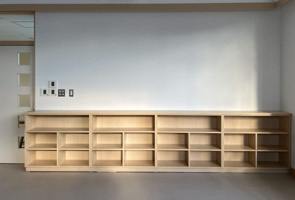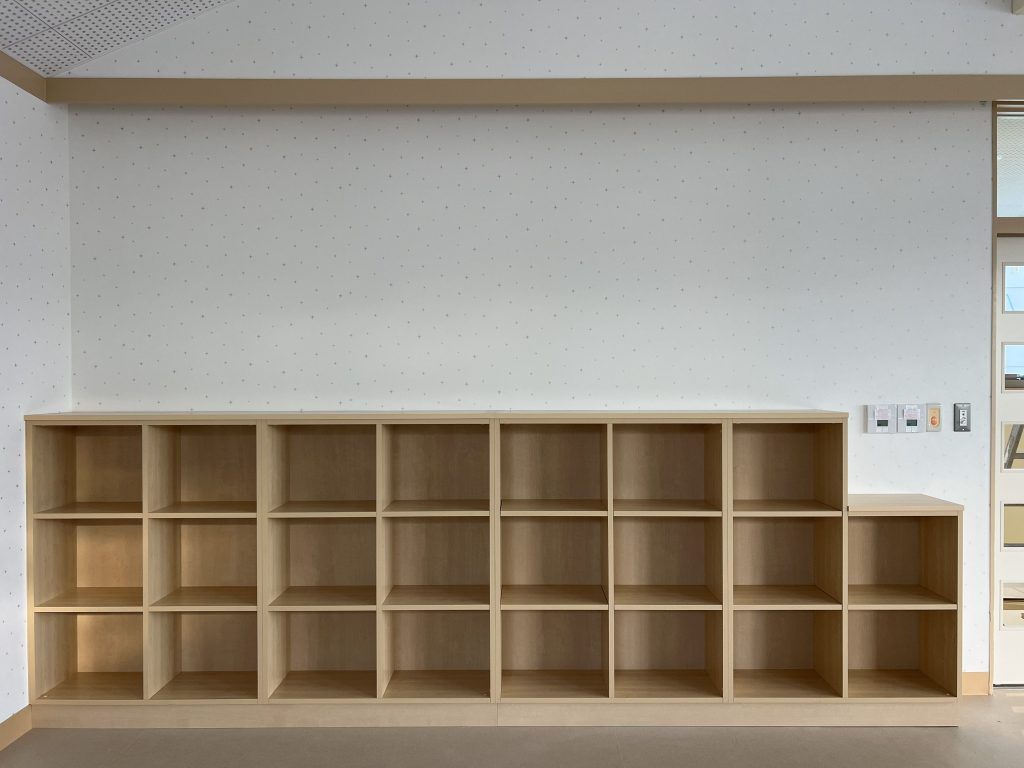 長さ4mの本棚。学習室の入口を挟んで配置。