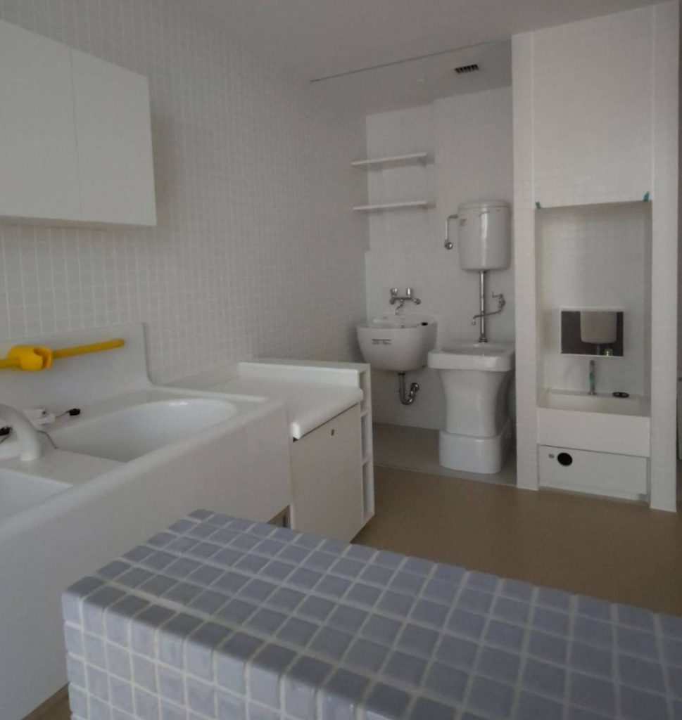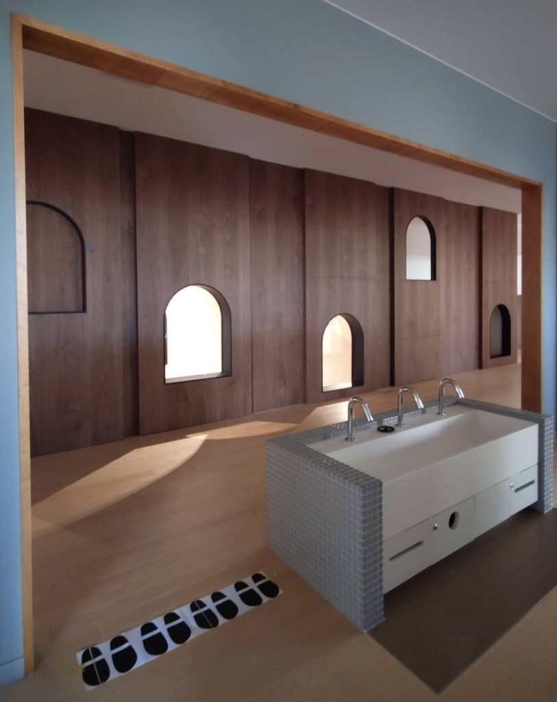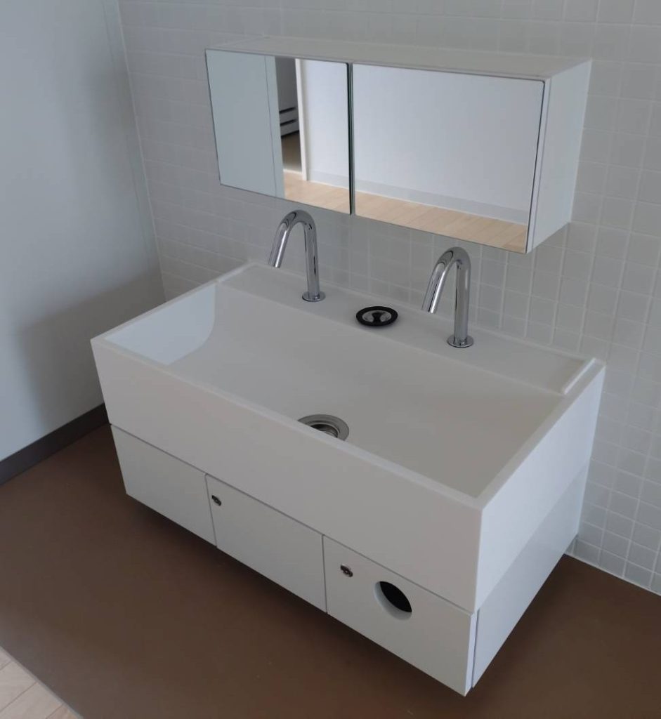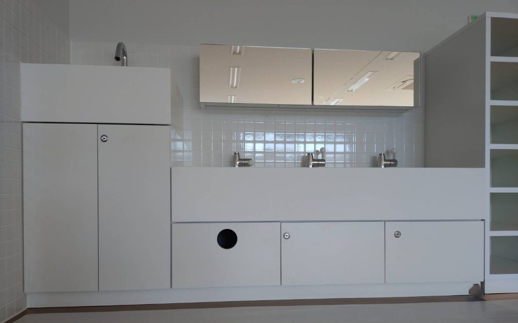 シンクは保育士と園児用では高さがこれだけ違う