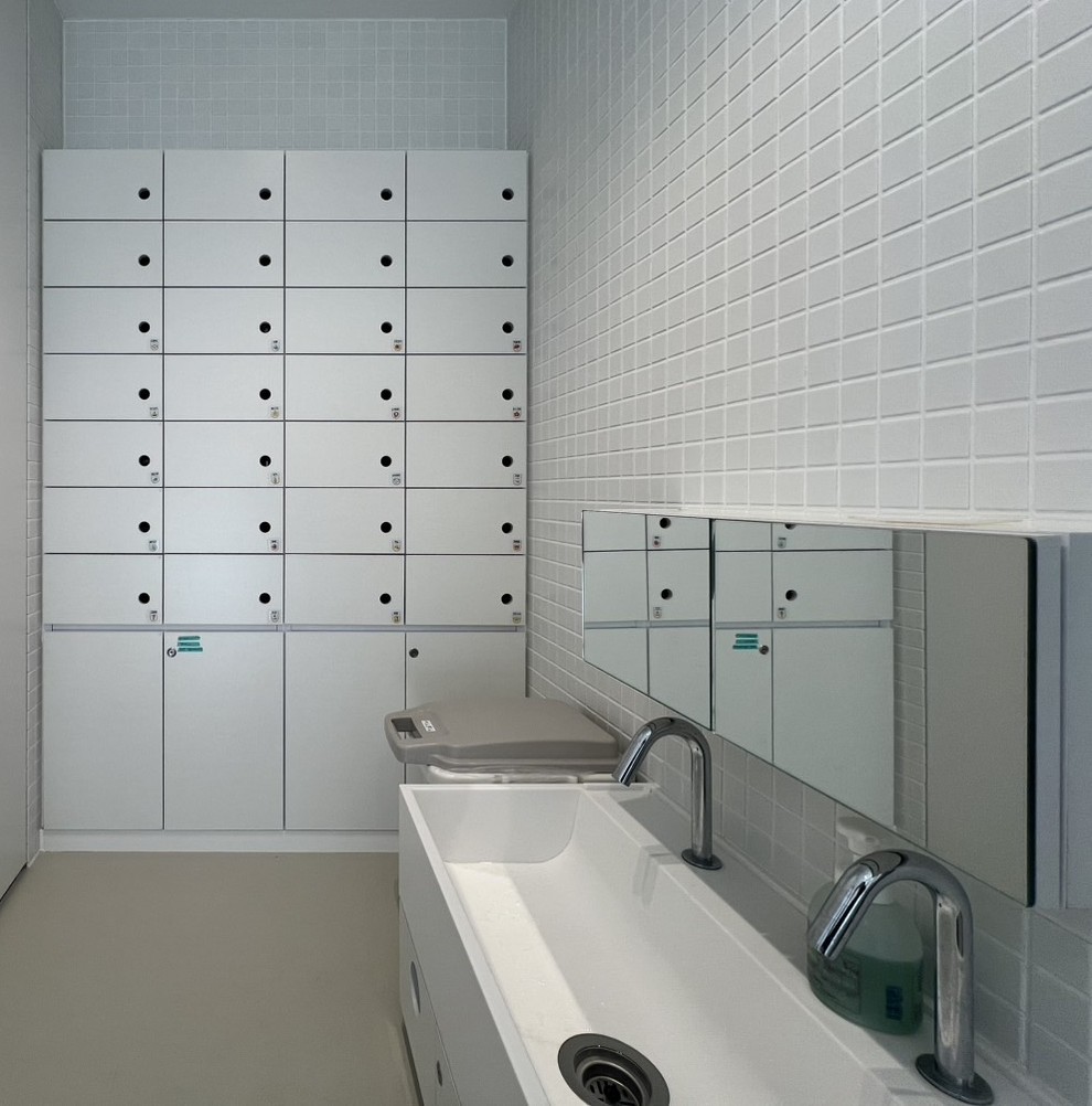 両サイドのタイルが目を引く「白い」手洗い